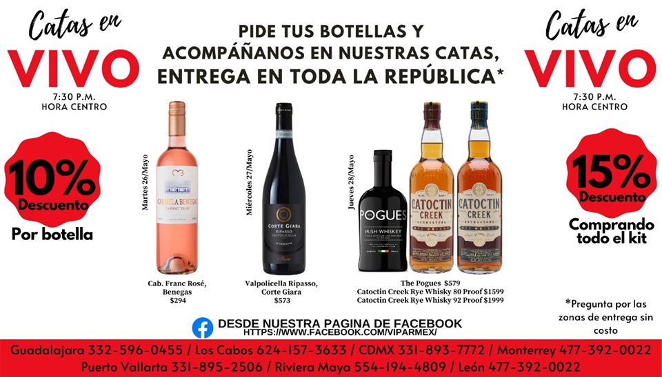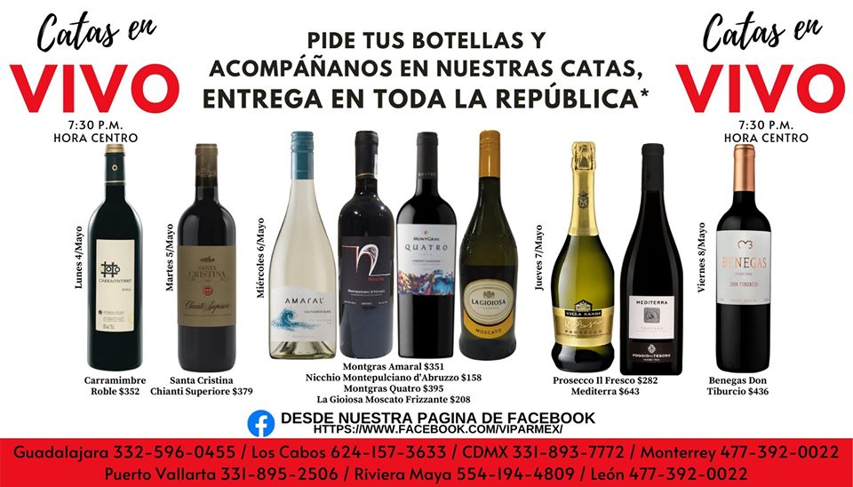 adquiere el vino por WhatsApp al (55) 4027 3609 y sigue la transmisión en su Facebook